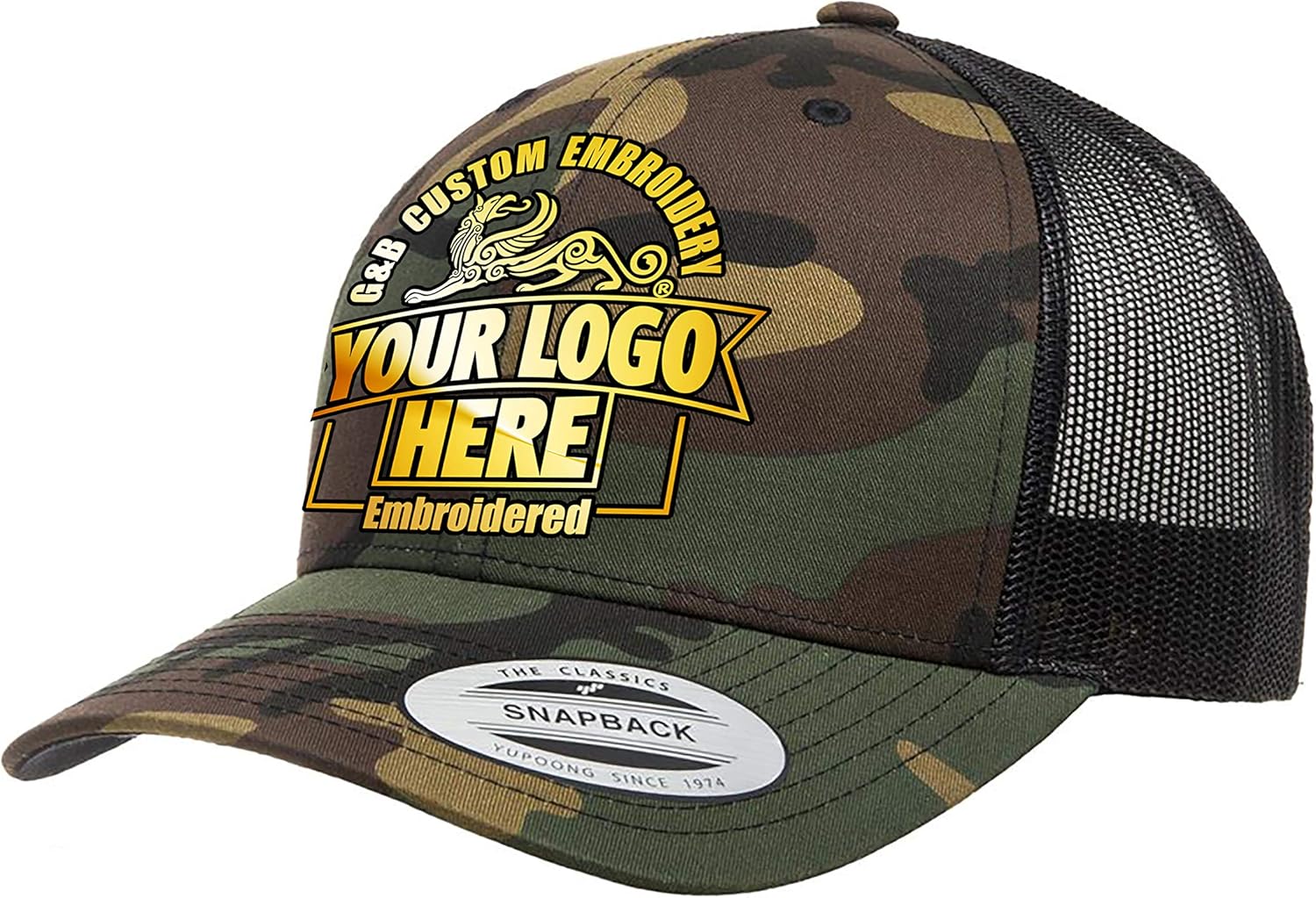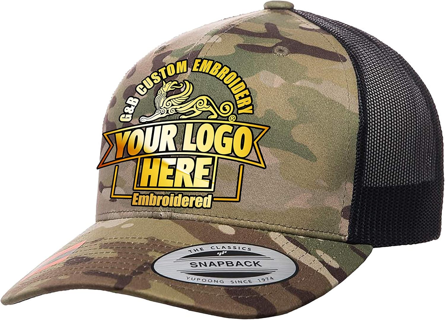 Custom Embroidered 6606T, 6606, 6606MC, 66006C, Meshback Retro Trucker Multi-camo 1-Contents:47% Cotton / 25% Polyester / 28% Nylon Sizes:OSFA Additional Features:Contrast trucker mesh back. Matching plastic snap. Hard buckram. Matching undervisor. 2- **Contents:71% Cotton / 28% Nylon / 1% Polyurethane **Sizes:OSFA **Black plastic snap closure. Hard buckram. Black undervisor.