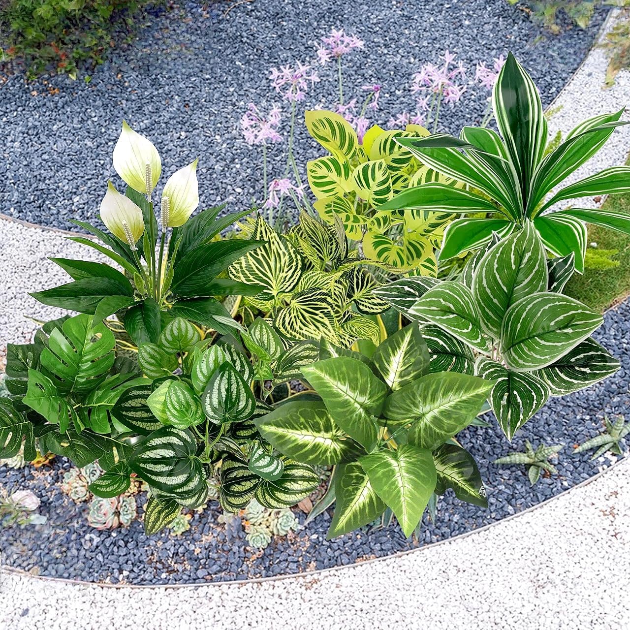 Specifications: Product Name: 8Pcs Artificial Plants Greenery Stems Colour: Green Styles: Brazilian Wood, Phoenix Tail Leaf, Watermelon Leaf, Net-Patterned Leaf, Anthurium, monstera deliciosa, Water Lily Leaf, Striped Leaf Material: PVC, Plastic, Iron Wire Advantages: UV-resistant, waterproof, stain-resistant, odourless, durable Each artificial outdoor plant contains iron wire, making it easy to adjust the shape Ideal outdoor decoration for porches, gardens, patios, backyards, and flower boxes; Made from high-quality materials, lifelike in appearance