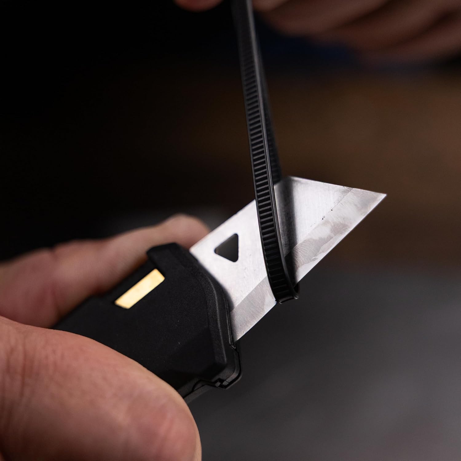 Precision meets reliability in this manual OTF utility knife designed for detail and scoring work. The Geared OTF mechanism’s rack-and-pinion drive allows smooth, controlled, one-hand operation for repetitive cutting tasks. The manual action provides consistent feel and fine control whether you are slicing cardboard, trimming vinyl, or cutting labels. The 3-position button lock makes it easy to alternate between functions. Standard Mode enables safe slide-retract during normal use, Open-lock Mode holds the blade firmly for hard cuts, and Blade-swap Mode supports tool-free blade changes. The polished 420J2 stainless kiridashi blade features a 1.75-inch cutting edge that excels at precision work and can be resharpened as needed. The handle also accepts standard disposable utility blades and other premium blade shapes to adapt to different materials. Built to carry and service, the glass-filled nylon handle (black) delivers strong, ergonomic performance at minimal weight. The deep-carry clip keeps the knife secure and out of the way until needed, and TiN-coated hardware ensures durability and corrosion protection. A single fastener allows quick cleaning after heavy use. The knife measures 3.66 inches closed, 5.21 inches open, and weighs approximately 1.6 to 1.9 ounces. Assembled in Ashland, Oregon, USA. For users searching for a precision box cutter, utility knife, or razor knife for packaging, crafting, or shop work, this kiridashi configuration provides smooth manual OTF action, fast blade swaps, and professional control.