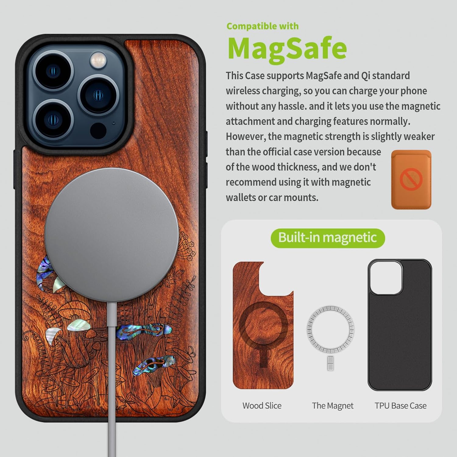 | Additional Features | Natural solid wood back panel and laser engraving, The unique solid wood keeps the palm dry and prevents fingerprints from sticking to the surface of the case, keeping it clean and elegant |