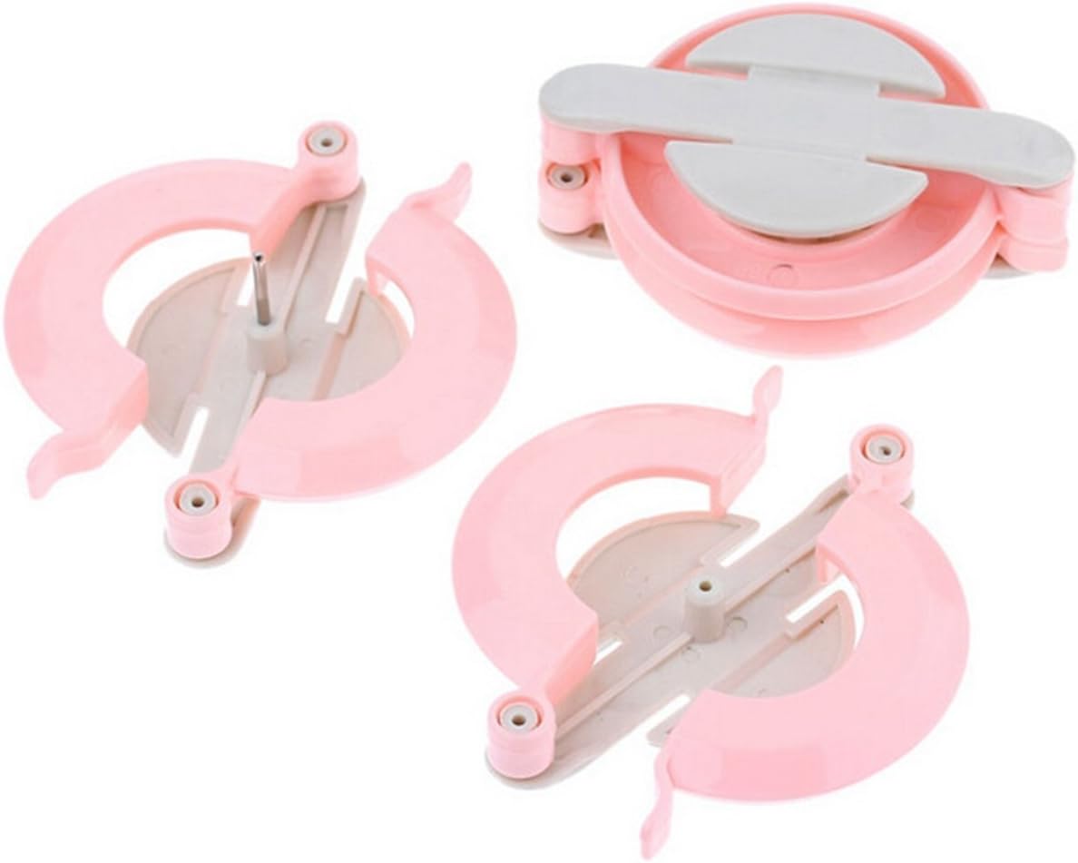 Description:: COLOR: Green/blue/red/yellow Material:Durable ABS resin and POM resin Four difference size(Diameter): 3.5/4.5/6.5/8.5 cm Feature:: Wind the wool around the plastic maker evenly, pull tight at the middle to secure and chop away the frills Each maker has arm exten out with the middle connecting.With a simple flick catch opening so you can work your wool around easily and evenly This method ensures you get the fluffiest, bountiful pom poms around with double the amount of wool. All you need is some wool and one scissors and you will have a fun pom-pom maker The pom pom maker very easy to use,you can make out ball for children hats or sock easily Good for the children to DIY the fluff ball.Great to be nice gift to your kids.