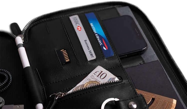 We use premium full-grain leather. This leather ages beautifully, developing a unique patina over time. As with any fine wood, some natural stains may appear, which are not considered defects but rather a true expression of its natural quality. Features of: Nomad Mini Pro Organizer - Ideal for lanyards, pens, A5 and A6 notebooks, business and credit cards, etc. - Perfect for travel or the office. - Keeps everything organized in one place. - Convenient zippered coin pockets. - Handmade by expert craftsmen in Spain. - Made of full-grain leather.