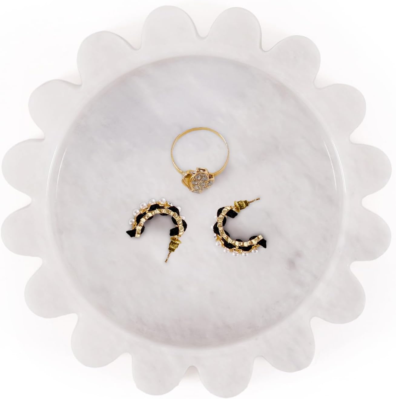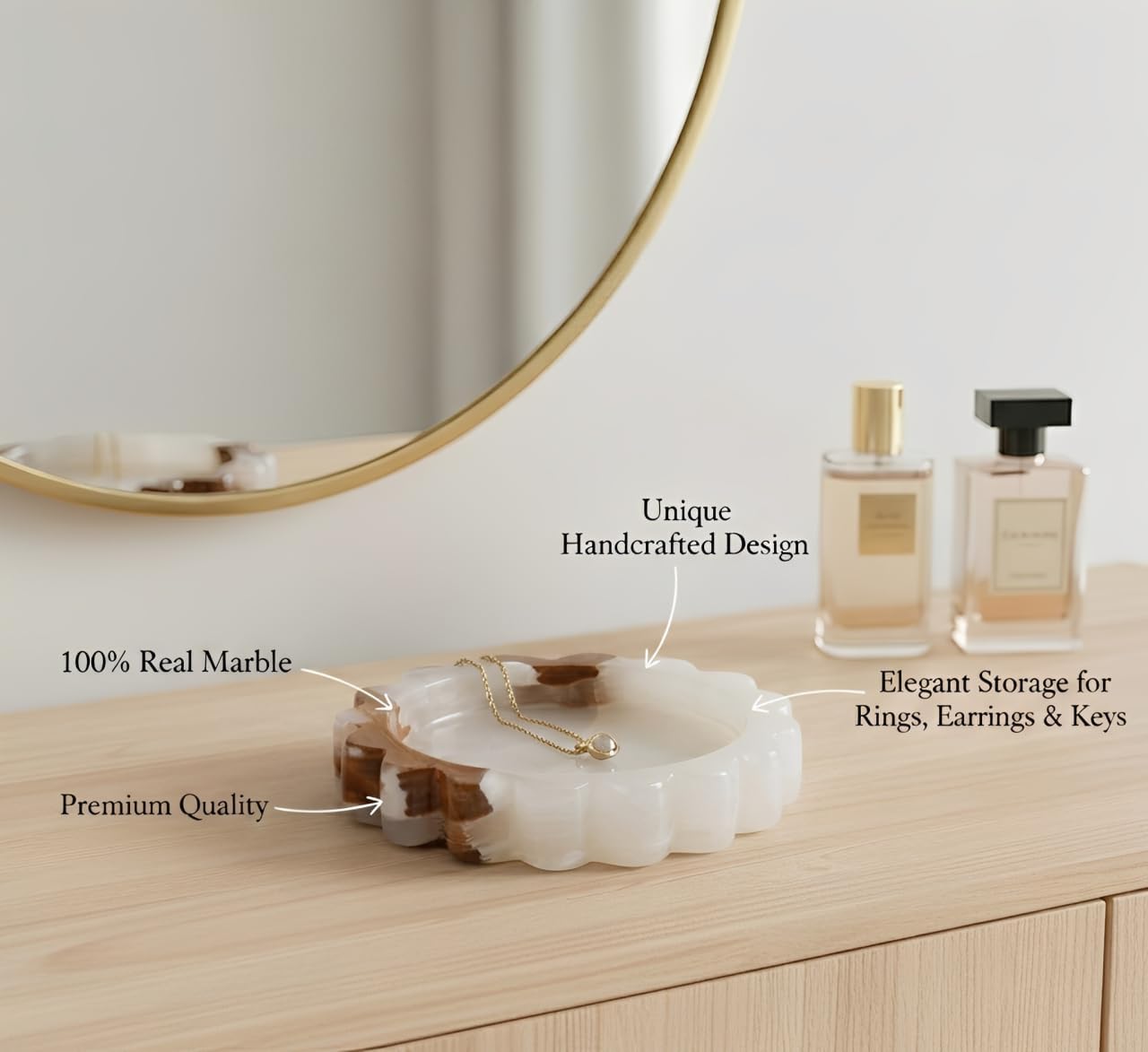 Keep your everyday essentials beautifully organized with this elegant natural marble jewelry dish. Designed with both style and functionality in mind, this compact tray offers the perfect place to store rings, earrings, bracelets, and other small accessories while enhancing the look of your vanity, dresser, or nightstand. Crafted from genuine marble, each dish features unique natural patterns that make every piece distinct. The smooth polished surface and refined design create a timeless decorative accent that complements modern, minimalist, and classic interiors. This versatile organizer is ideal for multiple spaces throughout the home. Place it on a bedroom vanity to hold jewelry, use it on an entryway table for keys and small items, or display it on a desk or dresser to keep everyday accessories neatly arranged. Its elegant stone finish makes it both a functional organizer and a decorative home accent. Perfect for women, jewelry collectors, and home decor lovers, this stylish tray adds sophistication to bedrooms, bathrooms, and entryways. It also makes a thoughtful gift for birthdays, housewarmings, weddings, or special occasions. Designed to combine beauty with practicality, this marble dish helps keep your small valuables organized while bringing a touch of luxury to your everyday space.