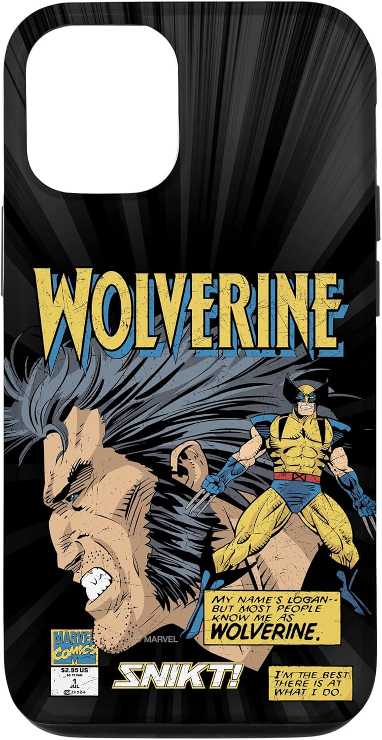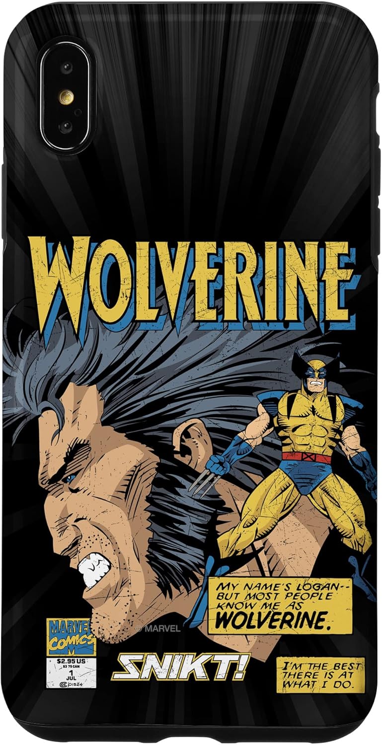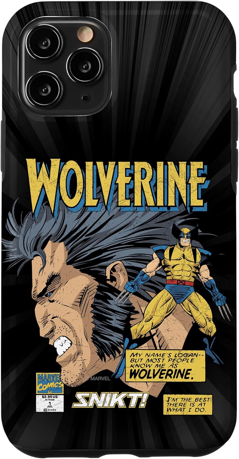 Wolverine Marvel Superhero design. Represent the clawed hero and mutant loner with this awesome Wolverine phone case, featuring retro artwork straight from Marvel Comics. This design features authentic details like the original Marvel Comics corner box and Logan in his retro gold and yellow costume. Two text boxes read, "My name is Logan-- but most people know me as WOLVERINE," and "I'm the best there is at what I do." This Marvel phone case is available for the following iPhone and Samsung models: iPhone SE (2020), iPhone 7, iPhone 8, iPhone 11, iPhone 11 Pro, iPhone 11 Pro Max, iPhone X/XS, iPhone XS Max, iPhone XR, iPhone 7/8, iPhone 7 Plus/8 Plus, Galaxy S10, Galaxy S10+, Galaxy S10e, Galaxy S9, Galaxy S9+, Galaxy S8, Galaxy S8+.