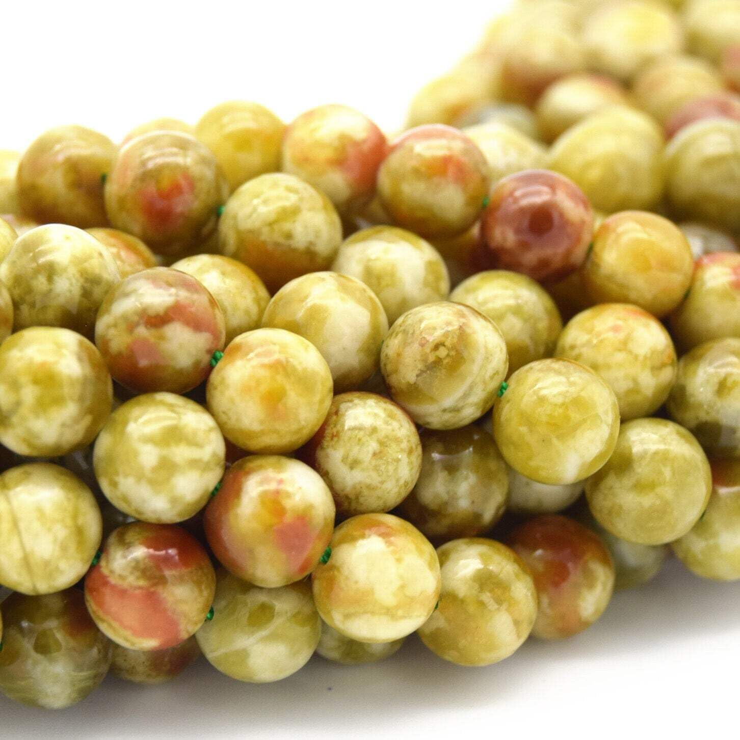 ☛ PRODUCT DETAILS ☚ Material: Natural Vessonite Garnet Shape: Round/Ball Finish: Glossy Color: Green/Red* Hole Size: 1mm Strand Length: 15.5" Bead Count: 4mm - Approximately 105 Beads 6mm - Approximately 68 Beads 8mm - Approximately 55 Beads 10mm - Approximately 42 Beads 12mm - Approximately 36 Beads 14mm - Approximately 29 Beads