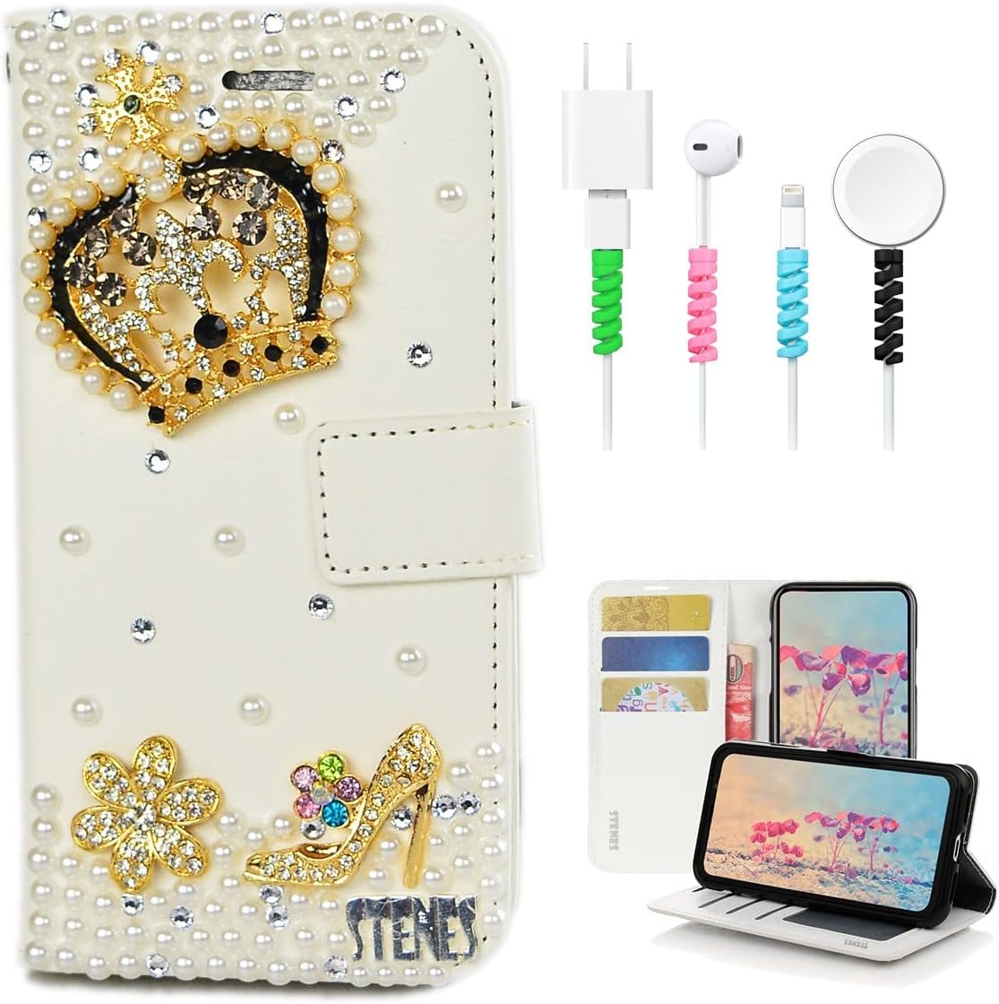 STENES Luxury Crystal Phone Case - Where Luxury Meets Artistry As a US-registered trademark holder, we redefine luxury crystal case excellence with exquisite handcrafting - tailored for those wanting unique style & solid protection. Each premium bling case takes 50+ hrs meticulous hand-embellishment by skilled artisans, featuring AAA-grade crystals & proprietary composites for lasting luster & durability, ideal for daily luxury accessories. Artisanal Craftsmanship & Shockproof Durability Our workshop blends design & engineering for eye-catching charm & drop resistance: _ Genuine crystals & custom prisms for dazzling shine, ideal for sparkle fans _ Top-tier adhesive secures embellishments, preventing wear, peel & fall _ 12-point strict quality inspection ensures consistent finish across all covers _ Reinforced edges for impact resistance & precise ports for full function access Elevate Your Style in Every Scenario This giftable case is more than an accessory - it's a shining style statement: _ Daily Commute: Subtle glamour for work, school, coffee runs _ Special Gatherings: Stand out at weddings/dinners with dazzling, tasteful details _ Professional Settings: Elegant & professional for meetings, highlighting unique taste _ Thoughtful Gifting: Gift-ready set for birthdays/holidays, perfect for memorable gestures What You Get in the Package Kit includes: 1 x STENES Luxury Crystal Phone Case – Sparkling style & reliable protection 1 x STENES Port Dust Plug (Color Sent Randomly) – Blocks dust & debris 4-Pack STENES Cable Protectors – Prevents fraying & tangles STENES - Where Luxury Meets Artistry - For Those Who Refuse Ordinary