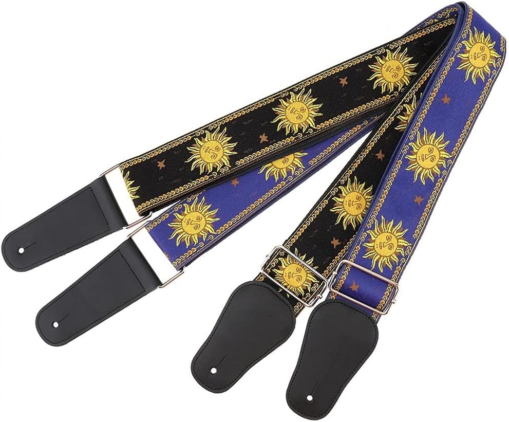 :Woven Embroidery Material:Genuine LeatherMin Length:110CM / 43.307InchesMain Material:CottonMax Length:168CM / 66.1416InchesWidth:5.5CM / 2.1654InchesApplication: Acoustic / Folk / Electric Guitar / Electric BassFeatures:Pretty vintage classical pattern woven classic design brings elegant appearance.With fabric woven, the top layer is cotton and the bottom layer is polyester.High grade soft genuine leather ends for and long lasting usage.Adjustable 110 -168cm length for any electric or acoustic guitar or bass.5cm wide and nylon material ensure that users experience less weight of the guitar, sitting or standing to play guitar comfortably, for long gigs and heavy instruments.Elegant design, comfort webbing without any prickle or sharp for your neck.notes:The size error of manual measurement may be small.Due to different lighting effects and monitor , the color of the actual product may not fully reflect the color the picture.The package includes:1* guitar strap