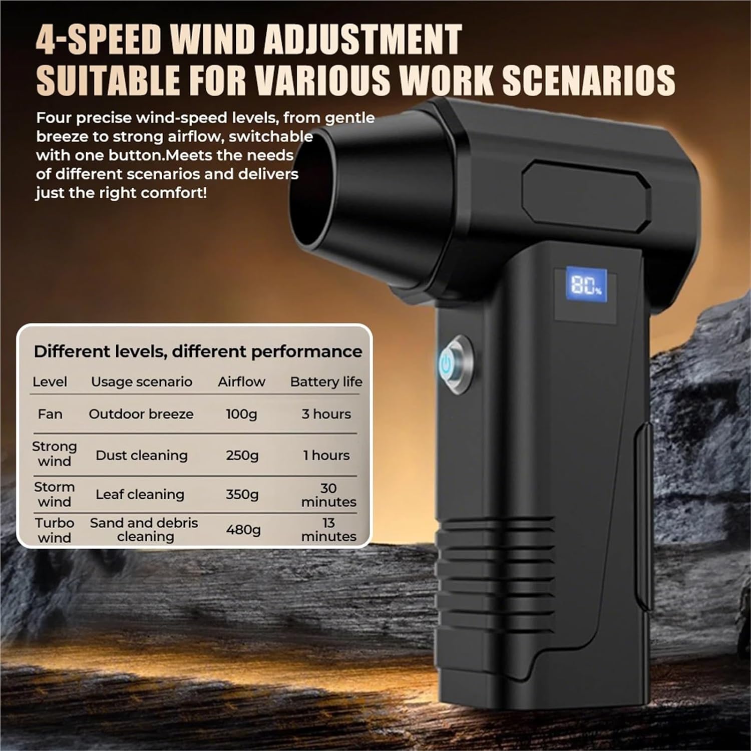 Snow BlowersFeatures:1. Strong wind design, with perfect dust removal effect. Wind speed up to 52M/S.2. Easy and convenient to operate, which greatly improves your cleaning efficiency. Low heat generating, high efficiency, and stable working performance.3. Built-in 12000mAh large capacity lithium batteries, with long endurance.4. Adopt Type-C interface, support 20W fast recharging protocol, energy-saving and cost-saving.5. It is a versatile cleaning tool for home, car, and office, suitable for carbon fire blowing, industrial dust blowing, soot blowing, keyboard cleaning, car and motorcycle cleaning, car center console cleaning, car crevice cleaning, foot mat crumb cleaning, picnic garbage cleaning, etc.6. Digital display screen with battery level display and fan gear displaySpecification:Working Voltage:8.4VRated power:300WMotor specification:40MMMotor type:High speed brushless motorMaximum speed:480000RPMBattery type:Polymer lithium batteryCharging method:Type-C charging interface, supports 20W fast chargingMaximum wind speed:52 m/sMaximum Thrust:480 gramsPackage Included A:1pcs * Fan.orPackage Included B:1pcs * Fan.1pcs * Vacuum kit.Note:Please allow 0.5-1cm error due to manual measurement. pls make sure you do not mind before you bid.Due to the difference between different monitors, the picture may not reflect the actual color of the item. Thank you!==========High-concerned chemical : NoneBattery Included : YesApplication : Air BlowerPower : BatteryModel Number : 12000mAh Powerful Air Blower Compressed air DusterType : BlowerPower : BatteryUse : Home DIYPressure : High PressureMotor : Brushless