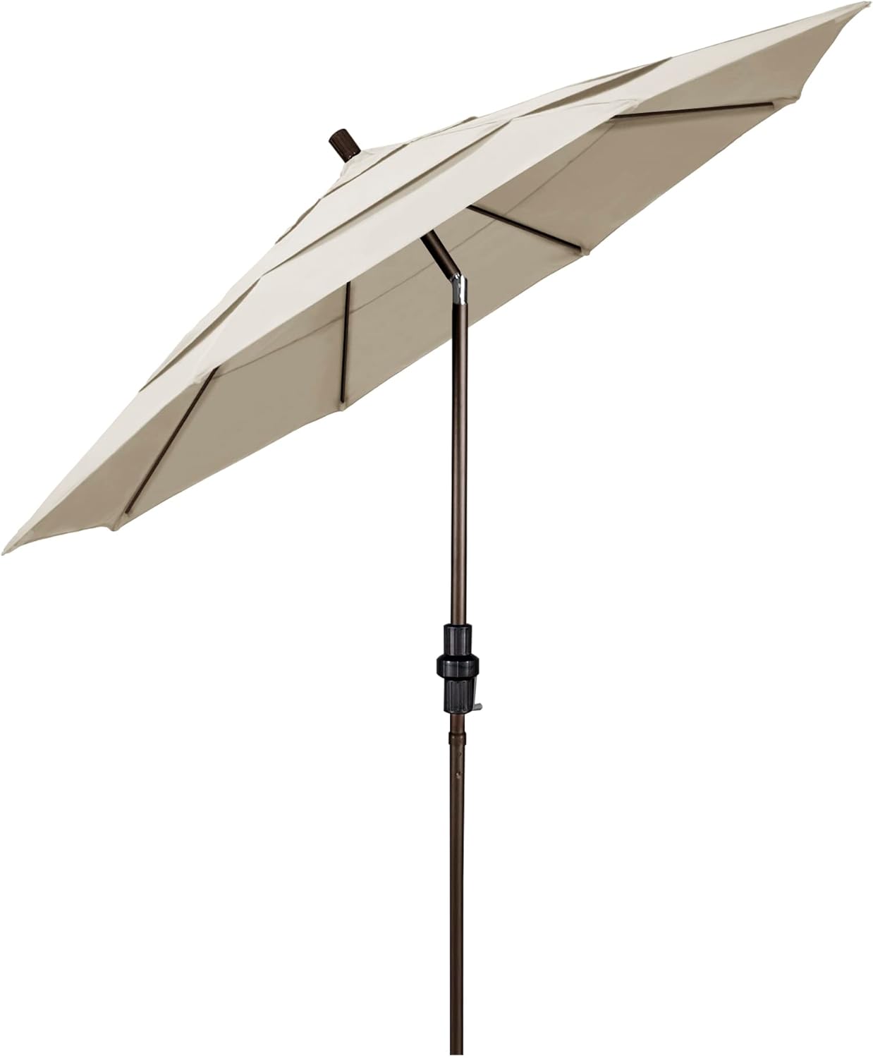 California Umbrella for Home, is a celebration of the outdoors. Designed for convenience, value and performance, these shade products bring the full weight of our design experience to your table. Being a California company, born and bred, for 65 years, we have our share of long summer days. The California Umbrella trademark is immediately recognized for its standard in engineering and innovation among all brands in the United States. As a leader in the industry, they strive to provide you with products and service that will satisfy even the most demanding consumers. Their umbrellas are constructed to give consumers many years of pleasure. Their canopy designs are limited only by the imagination. Expertly designed and detailed, this deluxe automatic collar tilt market umbrella eliminates the need for a cord to enable the tilting operation. The enhanced counterbalance mechanism is within reach and works easily to tilt the umbrella at desired angles. The umbrella is comprised of a high impact runner, notch and cap to ensure maximum durability. Not only will this umbrella withstand weathering, but create a radiant atmosphere outdoors. The canopy is made from our exclusive line of Pacifica 100% Solution Dyed Polyester which is a proprietary line of fabric comprised of 100% Solution Dyed Polyester that is fade resistant with built in color fastness . Pacifica fabrics are a great option offering the advantage of a 100% Solution Dyed fabric without the cost of a name brand acrylic fabric. Base is not included and must be purchased separately.