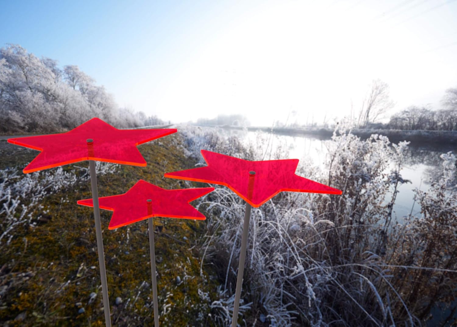 Thanks to the warm light and the soft swaying in the wind the Cazador will bring harmony and sunshine into your life whether the sun shines or not. Even on a dull day the sun-catcher will turn invisible light into visible light. Each glance at the garden or at the balcony will bring a smile on your face, for light is nourishment for the soul. Entire set of Cazador-del-sol consisting of 3 (THREE) approximately 7" Acrylic glass Sun-catcher Stars including the 3"9" fibre-reinforced plastic swinging rod and the little wedge for mounting the Sun-catcher on the swinging rod.