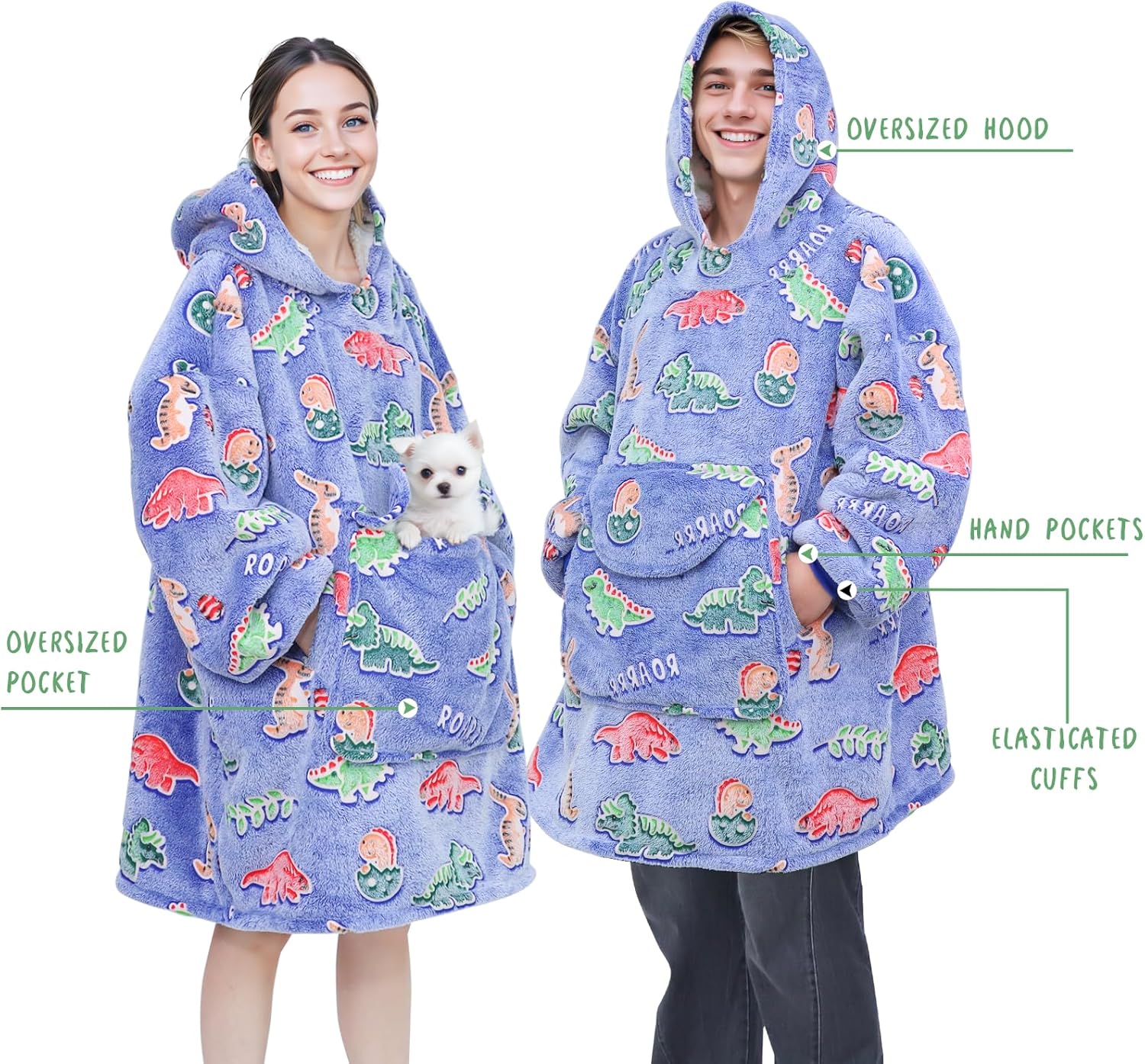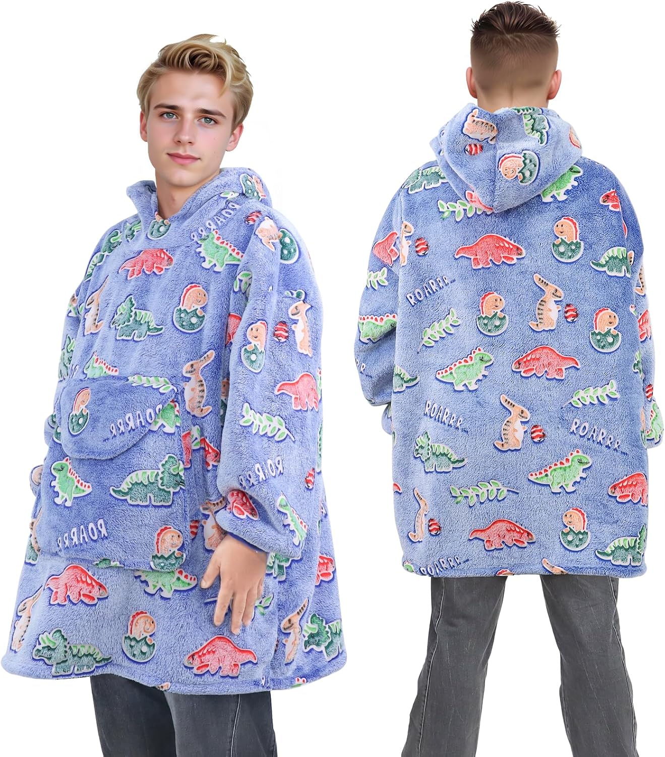 Blue Dinosaur Wearable Blanket Hoodie for Adults