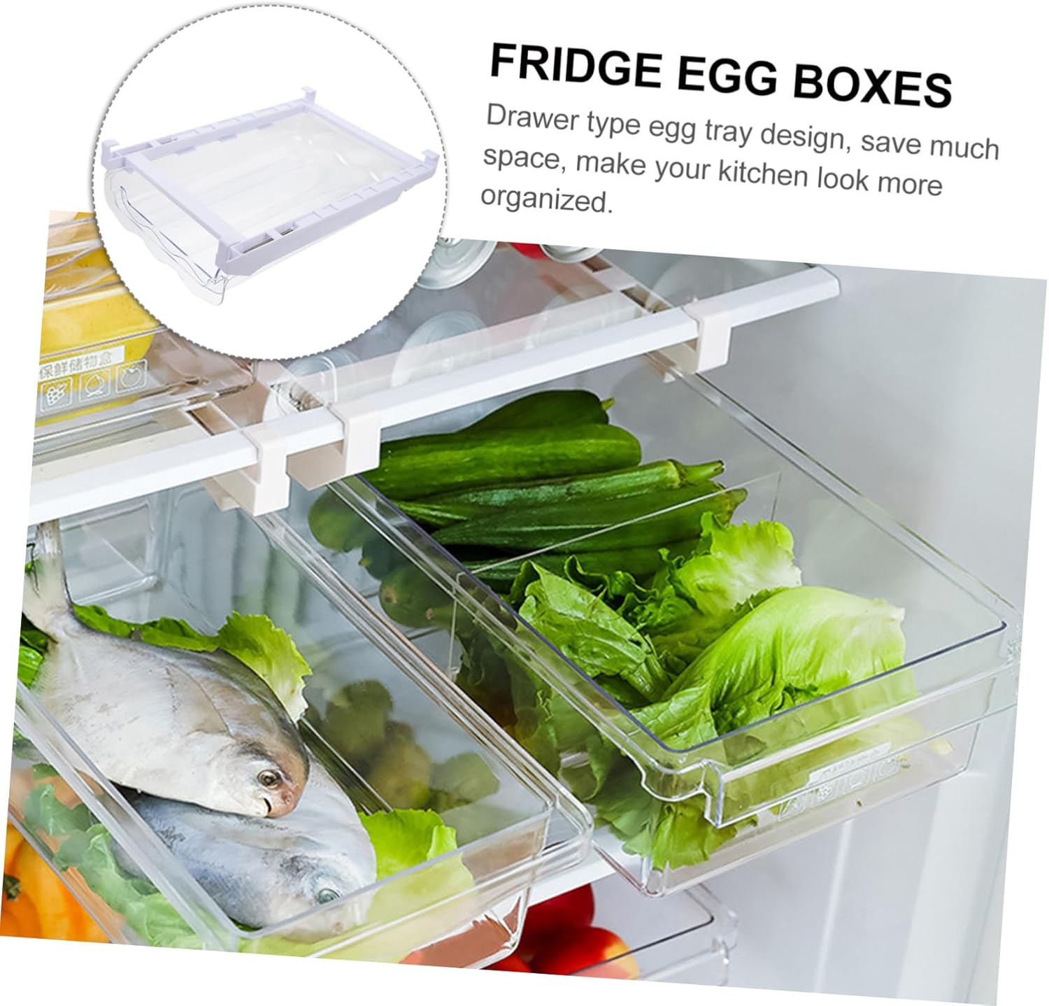 Package List 1 x egg storage drawer Characteristics - Material: Plastic refrigerator drawer - Color: White Egg Holders - Keeps eggs in sight and work surfaces clutter . A sustainable option for keeping your kitchen countertop clean refrigerator organizer drawers. - Suitable for refrigerator, kitchen, cabinet, etc. It has a simple design, but very practical in use fridge drawer. - for storing, organizing, and displaying fresh eggs and dispensing them when necessary Fridge Egg Holder. - A housewarming or festival for your friends or family, give them a little surprise plastic to go containers. - Drawer type egg tray design, save much space, make your kitchen look more organized Egg Holder.Goods Informationdrawer Organize food and storage right at your fingertips.egg tray for refrigerator for organizing eggs and other food items in the fridge, freezer, wasted space under kitchen cabinets and to maximize storage in the pantry