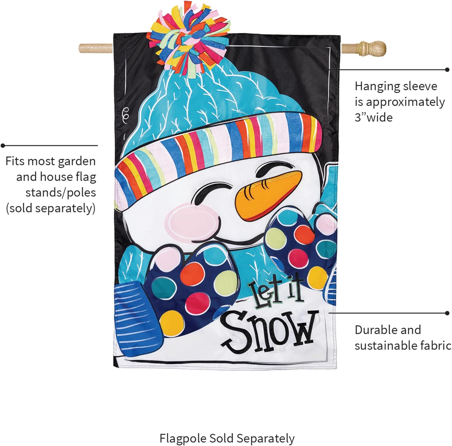 Add magic and wonder to any garden or yard when you hang up this beautiful flag. Featuring an adorable snowman wearing a hat and gloves, this flag is perfect for the festive season. Each Evergreen applique flag is carefully crafted.