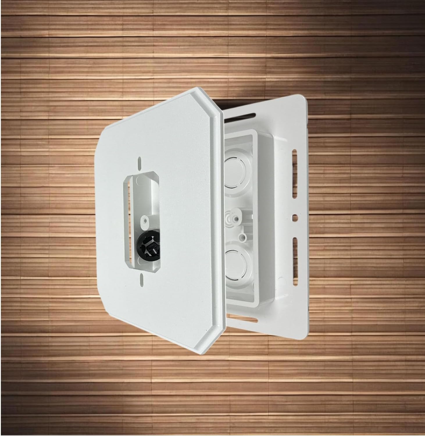 iMBAPrice Non-Metallic IMBA-8081F-2 Pack of 2 in White Universal Siding Mounting block with built-in electrical box wirh Flange for smooth vertical mounting of light fixtures on all siding types. You may find the siding mounting block is very easy to install, whether you have siding up or not. For a more complete job, you may also paint the fixture to finish with your desired colors. This product is a two-pieces design with flange cover. The back flange mounts to the substrate with screws. There is a channel formed between the back flange and face, the same concept as J- channel. If your siding will slide into the channel and the channel is wide enough to accommodate the lap. This Fixture Mounting Canopy Siding Mounting Block. Flange with Cover 2 Pieces Design. Built In 6.8 Cubic Inch Box. 1" J-Channel. 1x NM Cable Connector Included. (Mounting screws not Included).