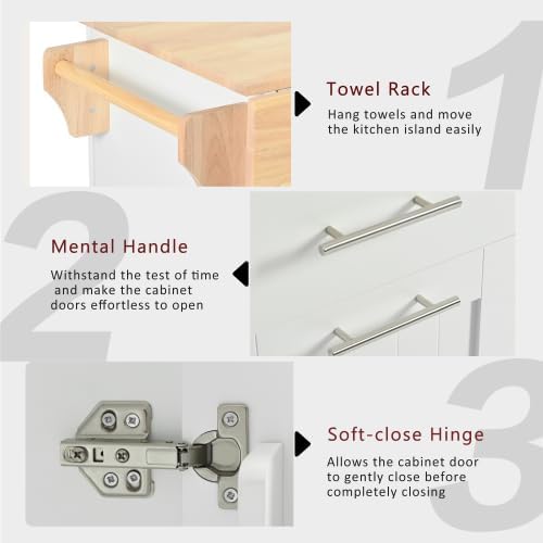 3-Tier Pull-Out Basket The width of each tier is the same, but the height of each tier is different. In addition, the shelf of the middle tier can be adjusted to different heights, which can meet your different placement needs, and different sizes of items can be classified and placed. Internal Storage Racks The two barn doors all feature 2-tier shelf racks, providing easy access to soy sauce, barbecue sauce, and other condiments. Adjustable Shelves Height-adjustable shelves inside the cabinet doors provide flexibility in accommodating various kitchen items of different sizes. Rolling kitchen island This mobile kitchen island on wheels is equipped with 5 universal wheels, 2 of which are lockable. The central placement of one wheel at the base ensures enhanced overall stability during movement.