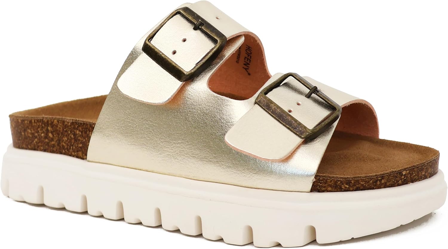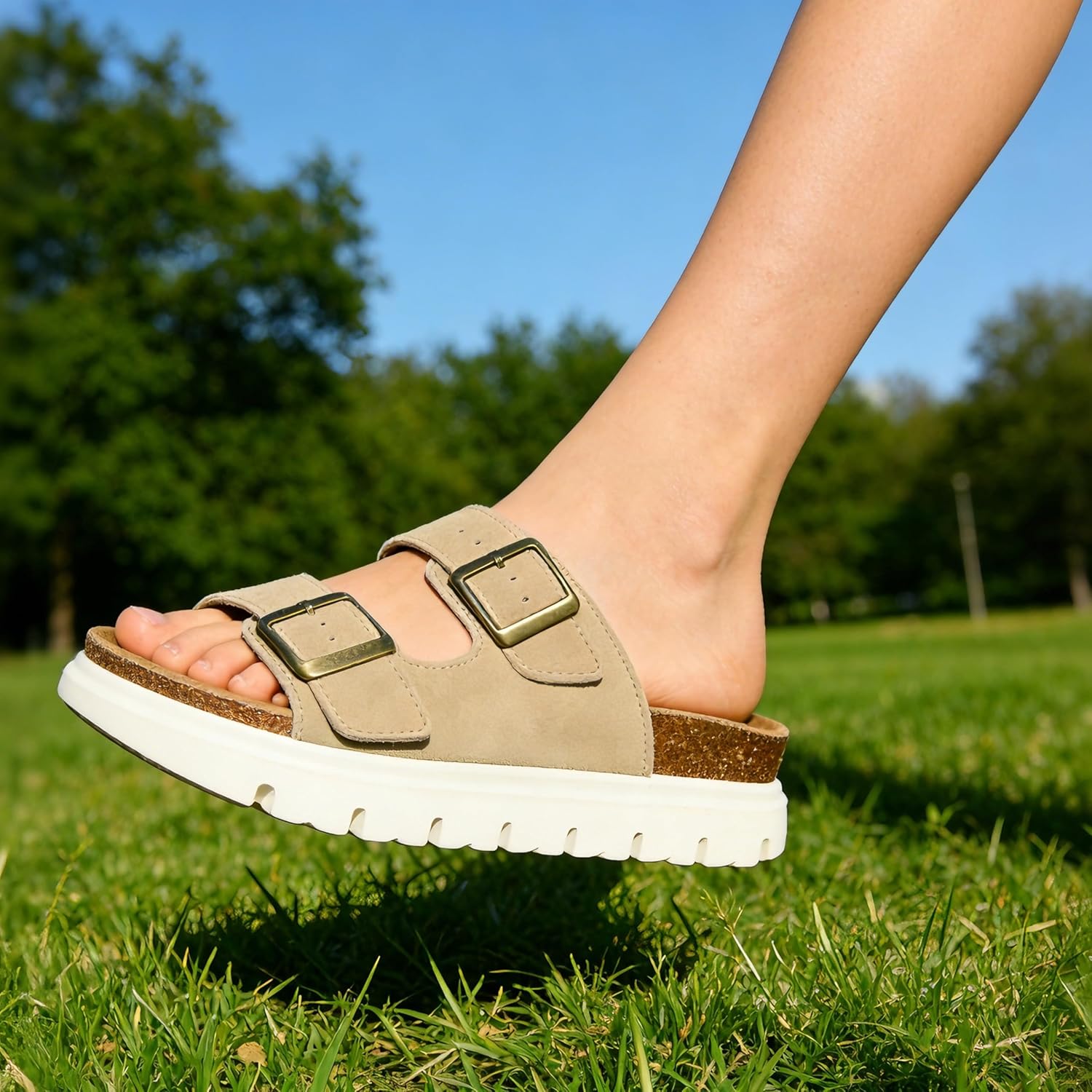 Platform Sandals for Women – Genuine Leather Chunky Wedge Slides with Cork Footbed, Arch Support Comfortable Summer Sandals 2026