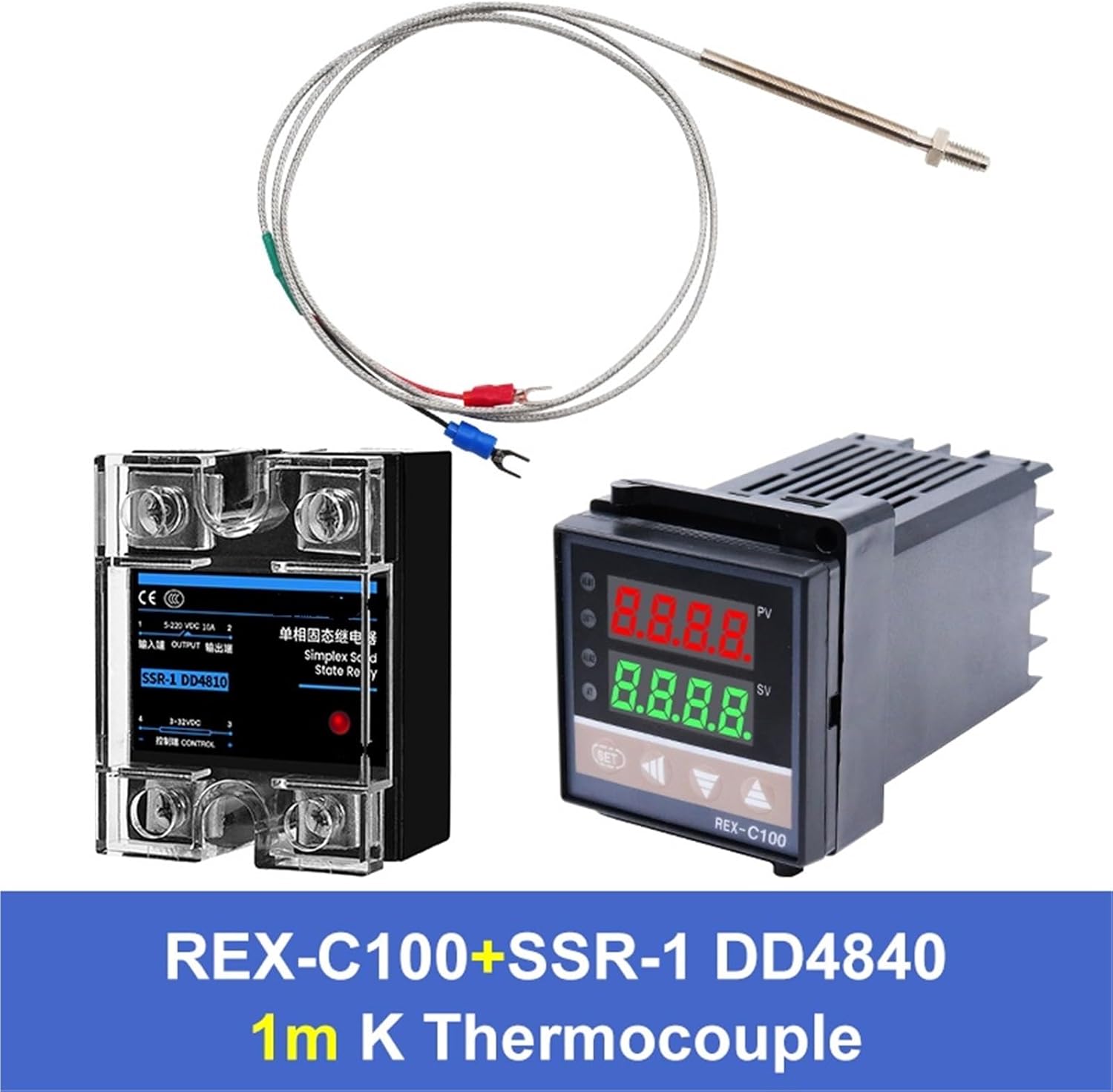 REX C100 Thermostat PID Regulator Digital Temperature Controller 0-400+ 40A DC-DC SSR Relay+ K Thermocouple M6 1m+ HeatsinkProduct Parameter:ModelnumberExternaldimensionsPerforationdimensionsOutputtypeInputtypeREX-C10048x4845 x45mmSSRThermocoupleREX-C40048x9645x92mmSSRThermocoupleREX-C41096*48REX-C70072x7268x68mmSSRThermocoupleREX-C90096x9692x92 mmSSRThermocoupleModel numberREX-C seriesAccuracy±0.5% of full scaleSupply voltage85-265Vac, 50/60 HzInput types-ThermocoupleK,J,E, Default K 0-400Output typeSSRPower consumptionLess than 10 VAControl methodPID Control (with auto-tuning) or Self-tuning, or ON/OFFIndication method8-segment 4-digital display and LED indicationSampling period0.5sElectromagnetic compatibilityIEC61000-4-4 (Electrical fast transient burst), 4KV/5KHz; IEC61000-4-5 (Surge), 4kvIsolation voltage>=2300v among the terminal of power, relay contact and signal; >=600v between two isolated weak signal terminalTemperature Mesurement Scope0 to 999 , default factory setting K02 input - 0 to 400 (adjustable)Operating temperature0 to 50 (32 to 122 )Operating humidity30-85% RH max, non-condensingAlias nameREX-C pid temperature controller, intelligent temperature controllerNote: Please carefully check your order before placing an order, we will ship according to the options you choose.Measure Type : KScrew : M6*1Cable Length : 1MType : KTheory : Temperature ControllerDisplay Type : DIGITALModel Number : rex c100Display Size : 2.0 - 3.9 InchesOrigin : Mainland ChinaMax Measuring Temperature : 120°C & AboveStyle : EmbeddedUsage : IndustrialSSR Feature1 : 40A MaxSSR Feature2 : DC controlled DCThermocouple wire length : 0.5m/1m/2mThermocouple Feature1 : K typeThermocouple Feature2 : M6 Screw TypeThermostat Feature1 : PID RegulatorThermostat Feature2 : rex c100 controllerThermostat Feature3 : pid controller temperatureThermostat Feature4 : rex c100 thermostatApplication2 : DC equipment